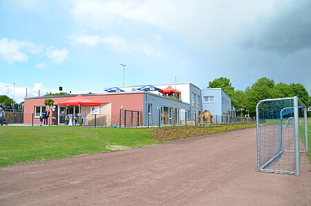 Im Erdgeschoss des Neubaus befindet sich die 4-zügige Sport-Kita Kusselkopp, die vom SVE Heessen betrieben wird und in Trägerschaft des Fördervereins der Sport-Kita ist. Kita-Leiterin Natalie Helbert und ihr Team betreuen hier seit Januar 2019 rund 65 Kinder auf einer Grundfläche von ca. 785 qm mit 4 großzügigen Gruppenräumen, kinderfreundlichen WC- und Waschräumen sowie einer 150 qm großen Turnhalle mit Kletterwand. Die weitläufigen Außenanlagen sind mit tollen Spielgeräten ausgestattet und bieten jede Menge Spaß und Bewegung für die Kinder im Alter von 4 Monaten bis 6 Jahren. Direkt nebenan liegen die Sportanlagen mit Natur- und Kunstrasenplätzen sowie das Hallenbad, in dem schon die kleinsten Kita-Kinder das Schwimmen erlernen.